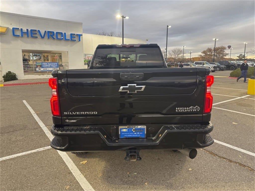 Drive our Diesel powered, Accident Free, One Owner, Certified Pre-Owned 2023 Chevrolet Silverado 2500HD High Country Crew Cab 4X4 with the Deluxe Pack in Black and don't sacrifice capability for comfort! Motivated by a TurboCharged 6.6 Liter DuraMax Diesel V8 supplying 445hp and 910lb-ft of torque to a 10 Speed Allison Automatic transmission. You can also work smarter with the standard advanced trailering system and digital variable steering assistance. Expressive design cues include LED lighting with LED cargo-bed lights, 20-inch alloy wheels, chrome assist steps, a spray-on bedliner, power trailering mirrors, a 120V outlet, rear/side bed steps, a power up/down tailgate, and our Deluxe Pack's 5th wheel/gooseneck hitch platform.