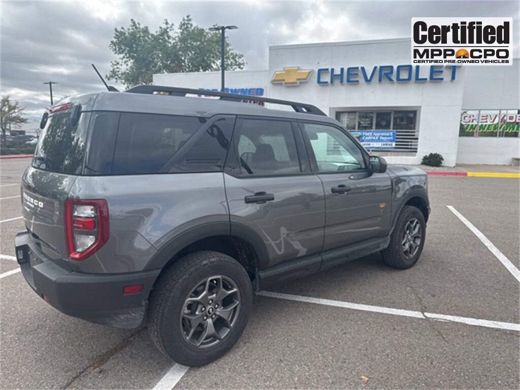 Our powerful, Accident Free, One Owner, Dealer Certified, Low Mileage 2023 Ford Bronco Sport Badlands 4X4 puts you on the fast track to extreme adventure in Carbonized Gray Metallic! Motivated by a TurboCharged 2.0 Liter EcoBoost 4 Cylinder providing 250hp to an 8 Speed Automatic transmission for rewarding strength. This Four Wheel Drive SUV is a fierce performer with Trail Control, an off-road suspension system, and enhanced terrain management, and it scores nearly 26mpg on the highway with a head-turning design. Daring and dynamic, our Bronco Sport features LED lighting, fog lamps, a Shadow Black safari-style roof, flip-up rear glass, white grille lettering, hatch-mounted flood lamps, and alloy wheels.