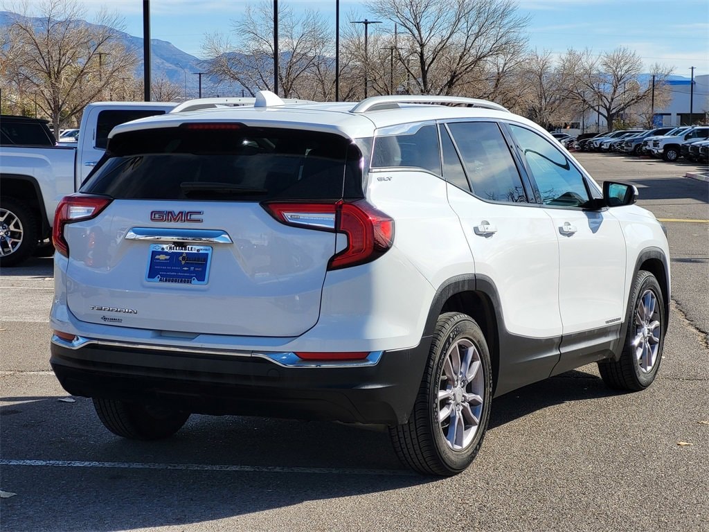 Our versatile, Accident Free, One Owner 2023 GMC Terrain SLT combines a tenacious spirit and premium features in Summit White! Motivated by a TurboCharged 1.5 Liter 4 Cylinder serving up 175hp tethered to a 9 Speed Automatic transmission with Electronic Precision Shift for sophisticated capability. This Front Wheel Drive SUV is also easy to maneuver and achieves nearly 29mpg on the highway with a powerfully sculpted design. Top Terrain details include signature LED lighting, fog lamps, heated power mirrors, 18-inch alloy wheels, roof rails, and the high-end convenience of a hands-free liftgate.